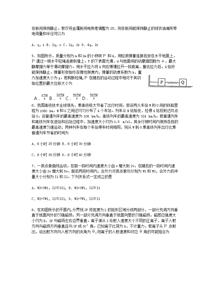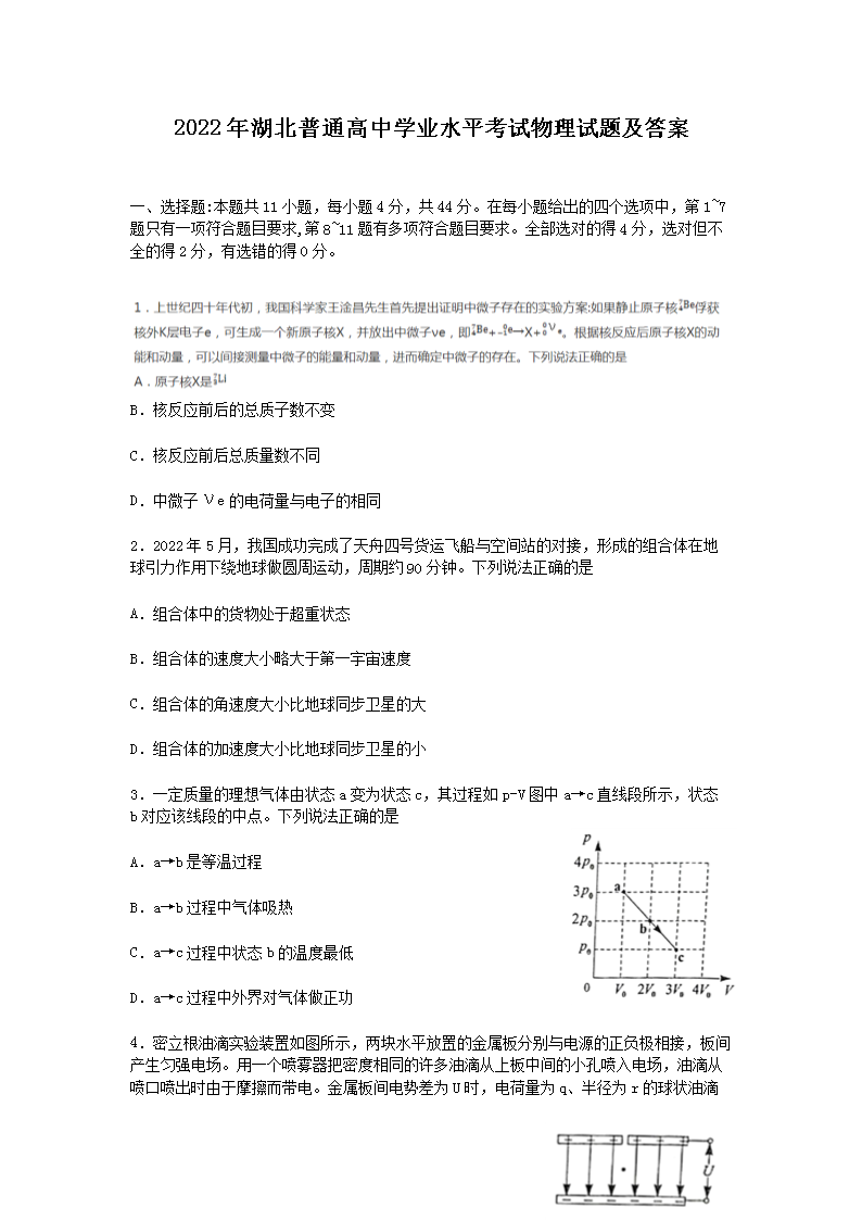 2022年湖北普通高中学业水平考试物理试题及答案(Word版)07-29