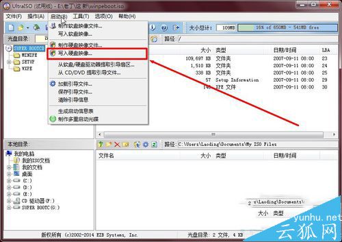 3、使用UltraISO+WinPeBoot.iso制作u盘启动盘