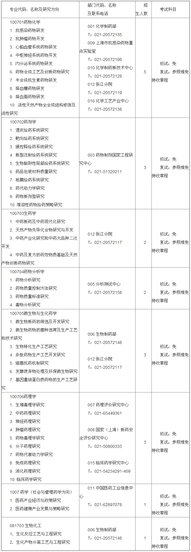 联系部门:中国医药工业研究总院研究生招生办