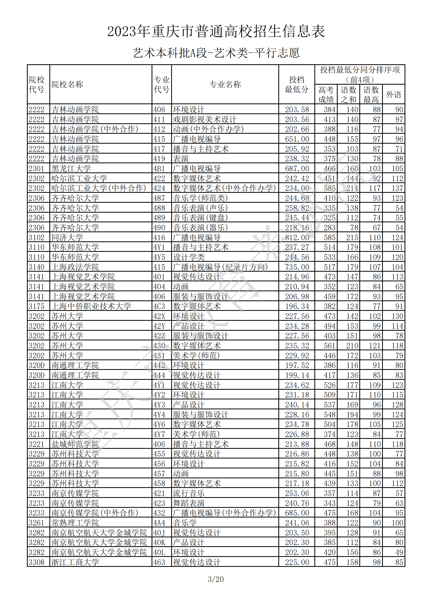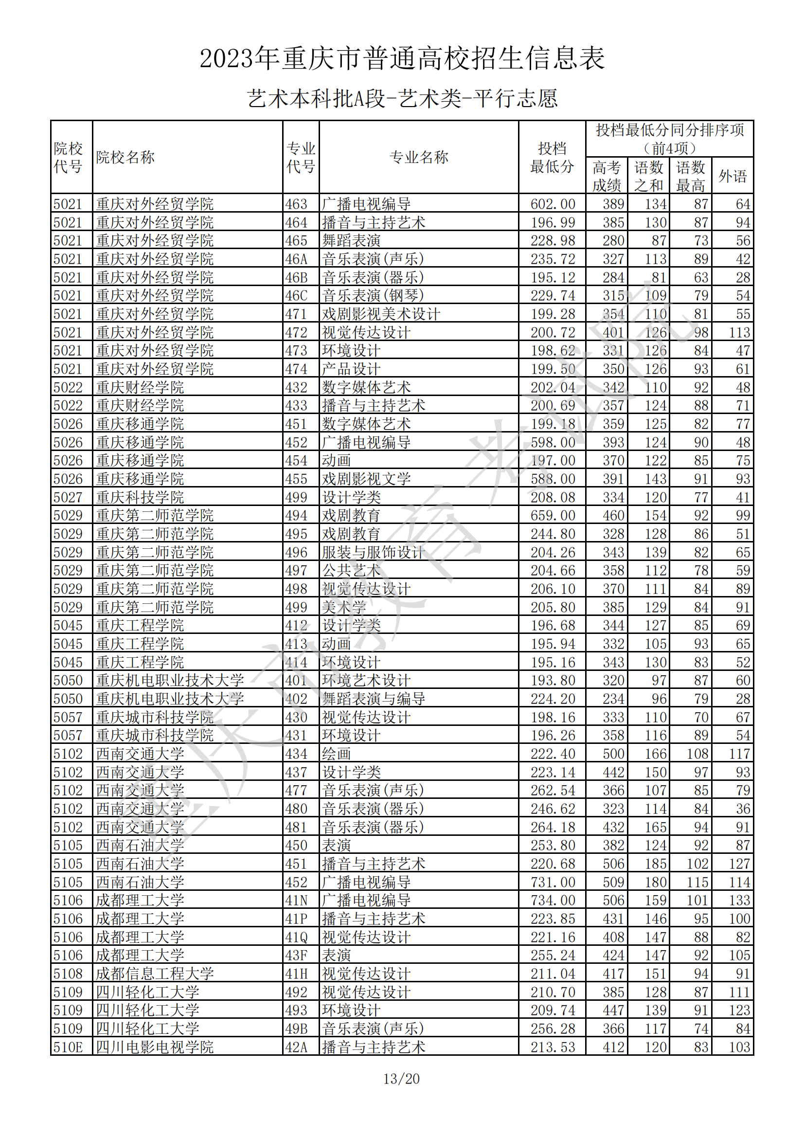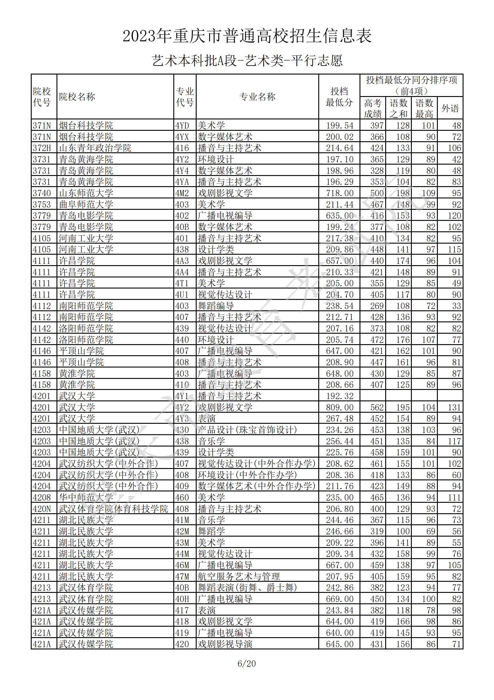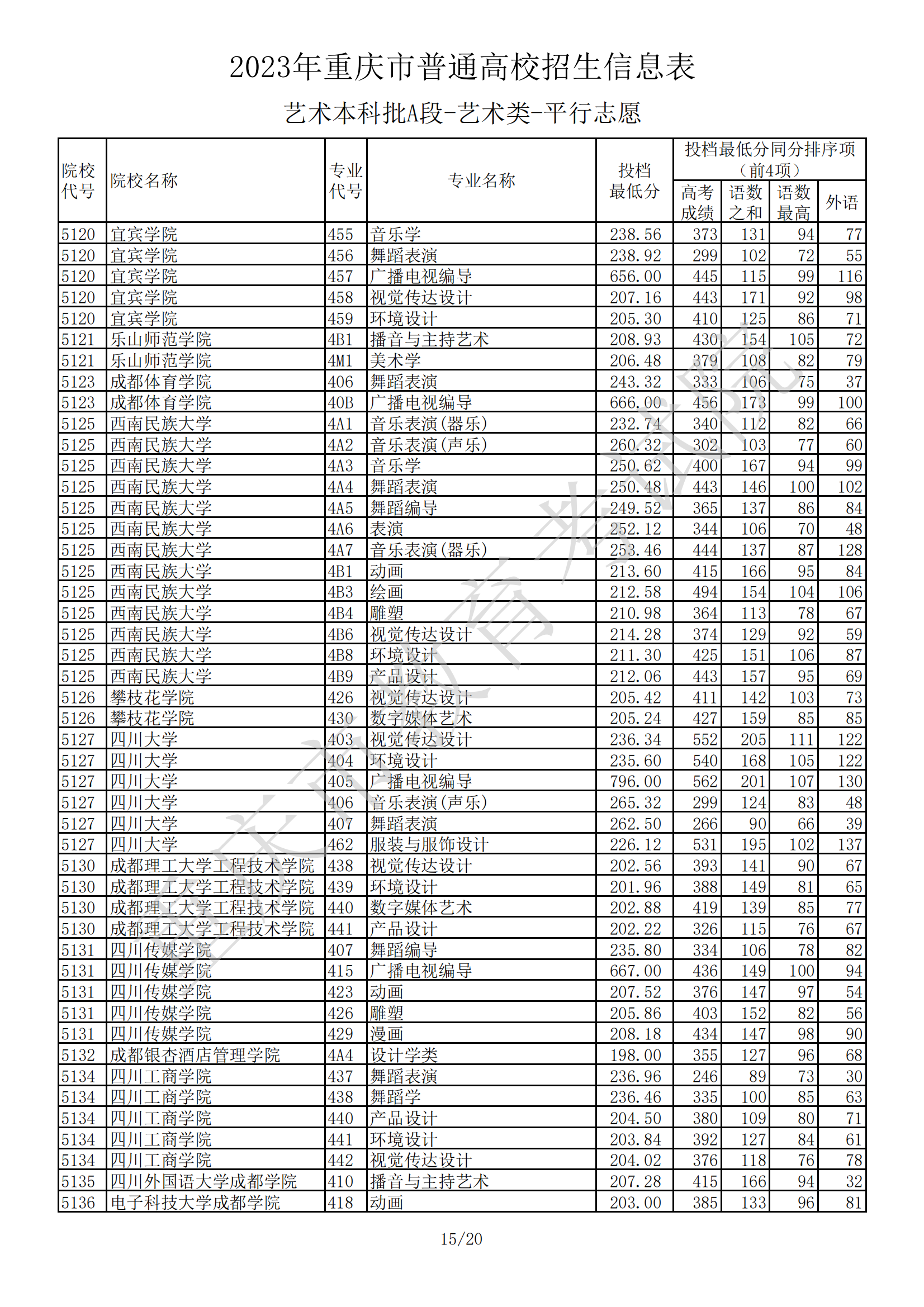 2023年重庆市普通高校招生信息表(艺术本科批A段-艺术类-平行志愿)07-15