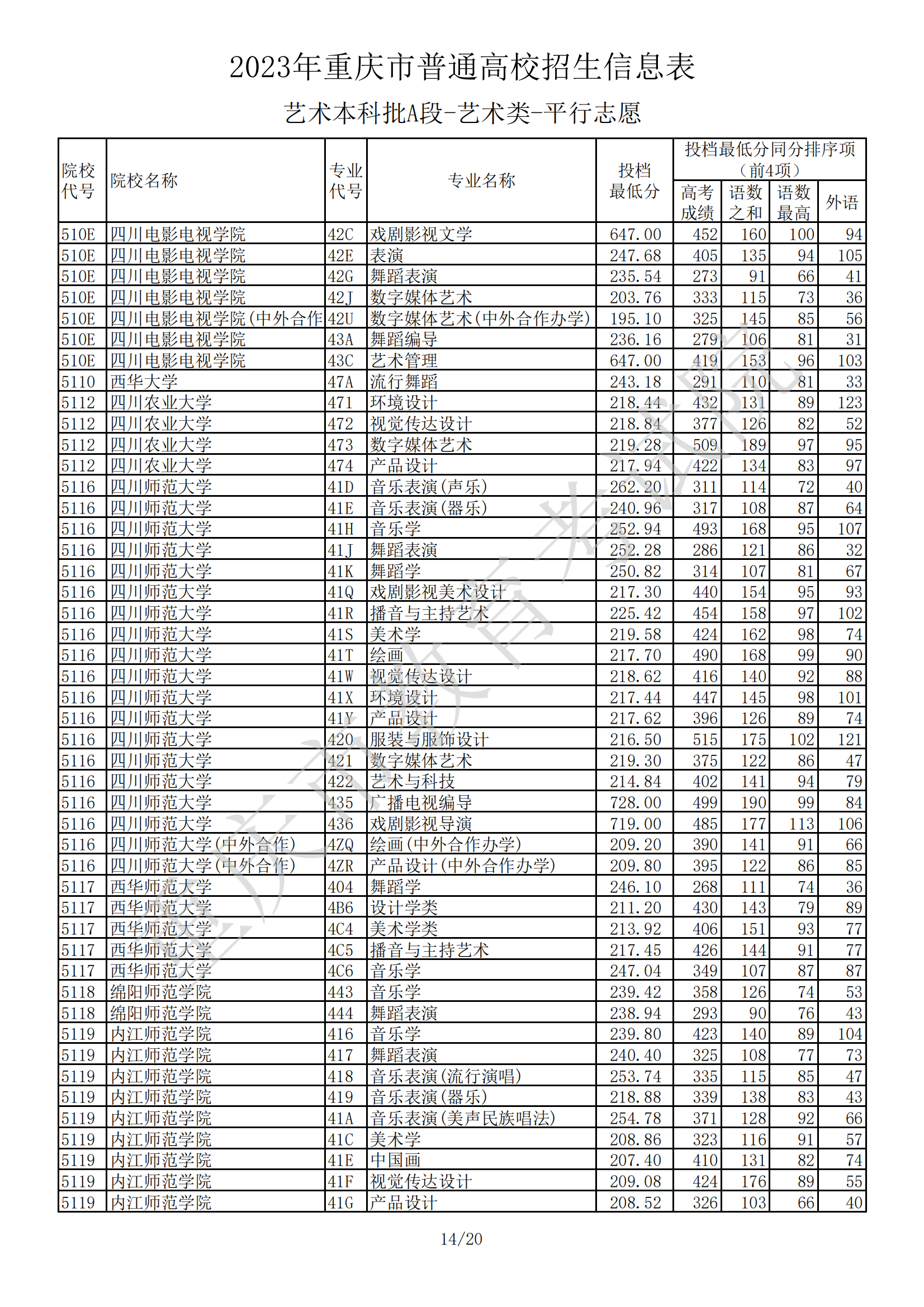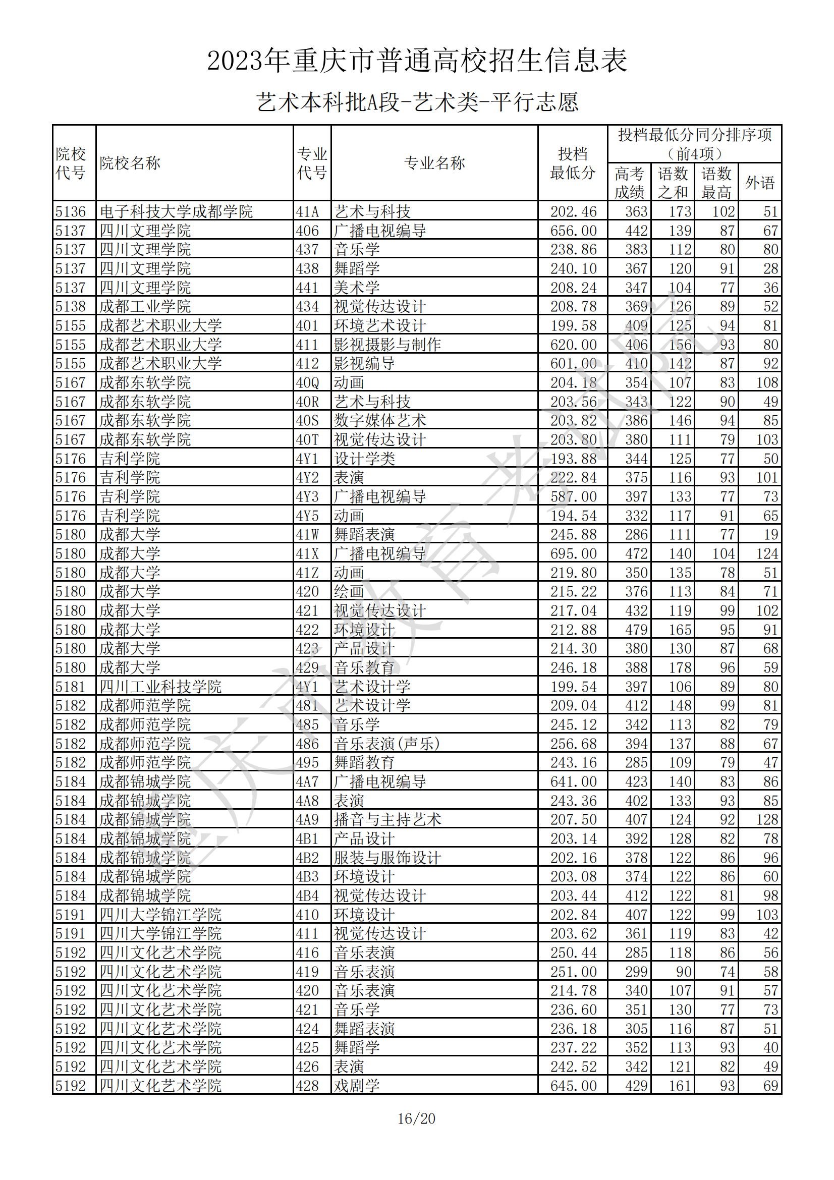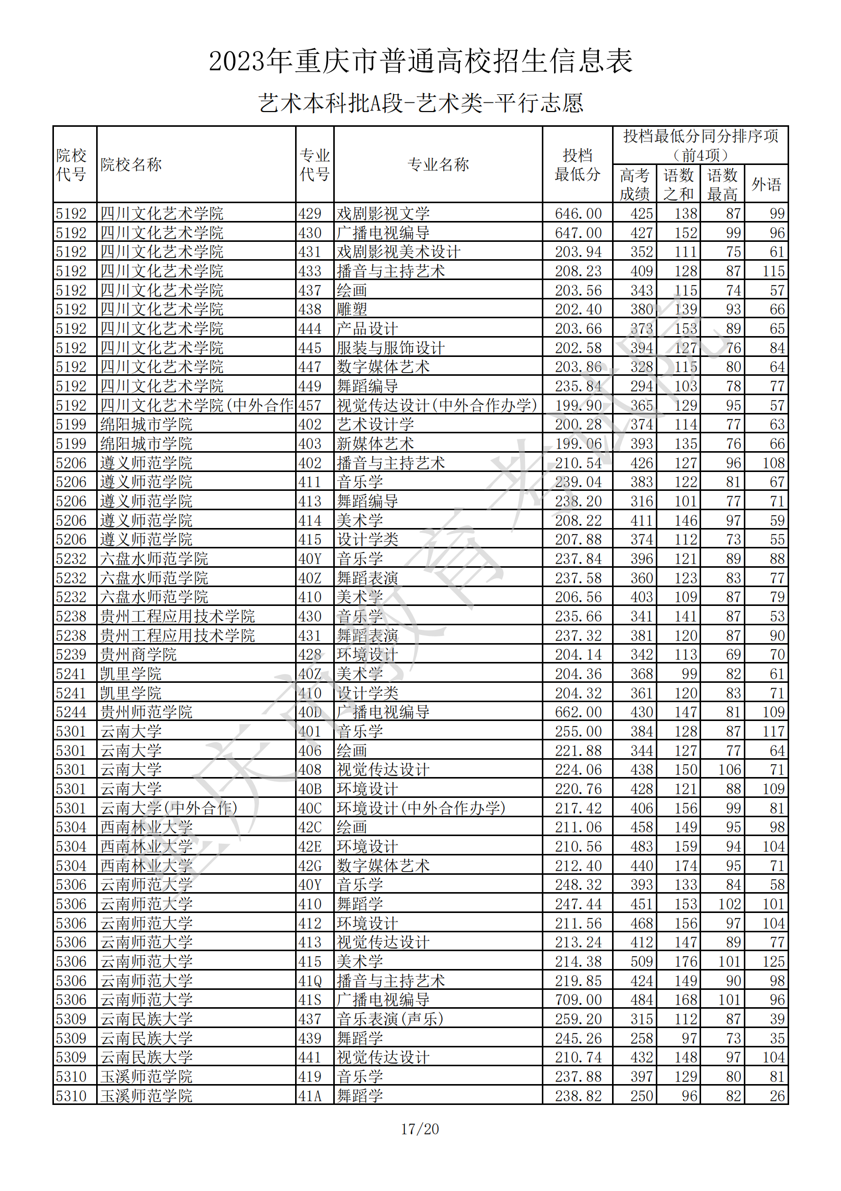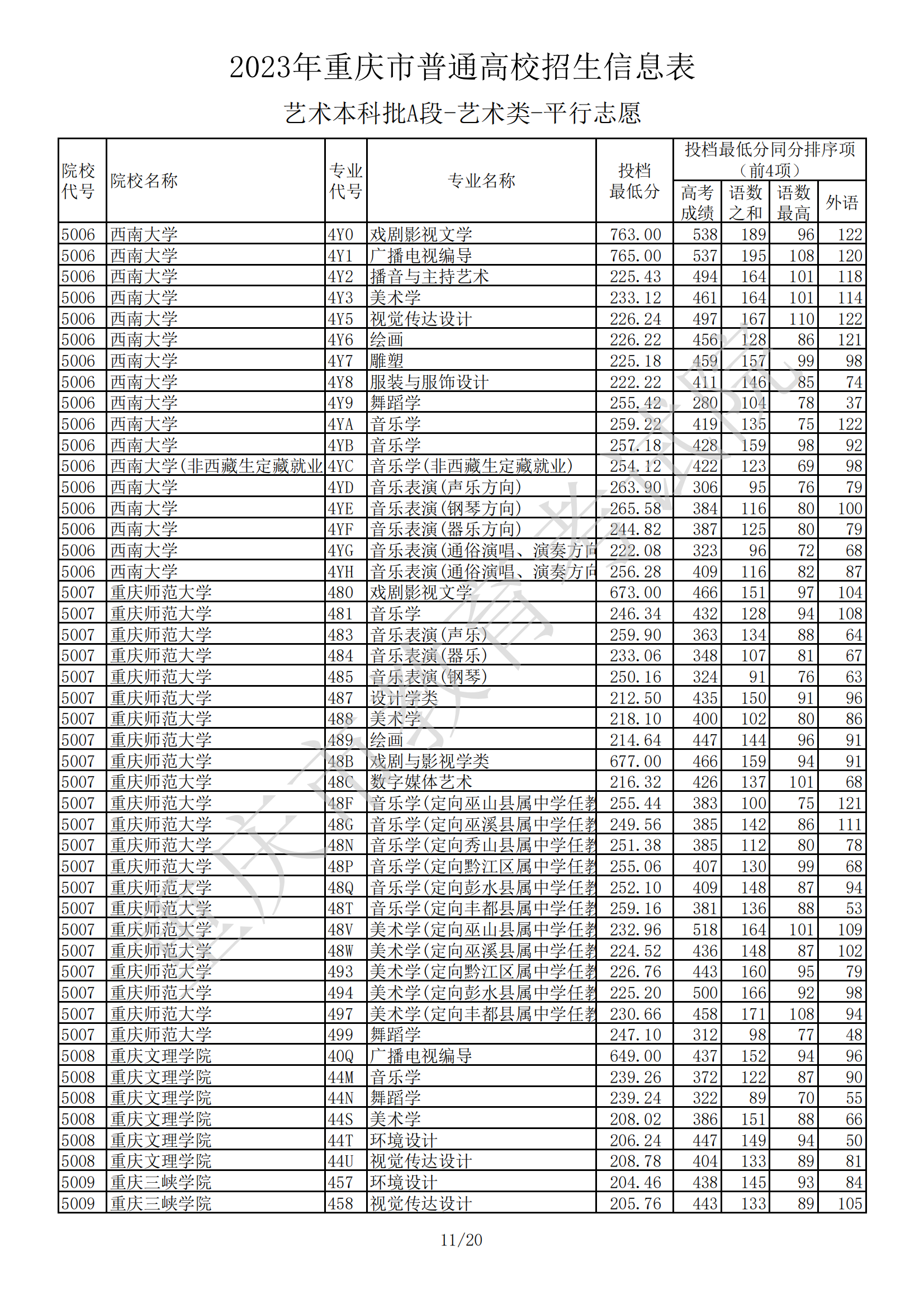 2023年重庆市普通高校招生信息表(艺术本科批A段-艺术类-平行志愿)07-15