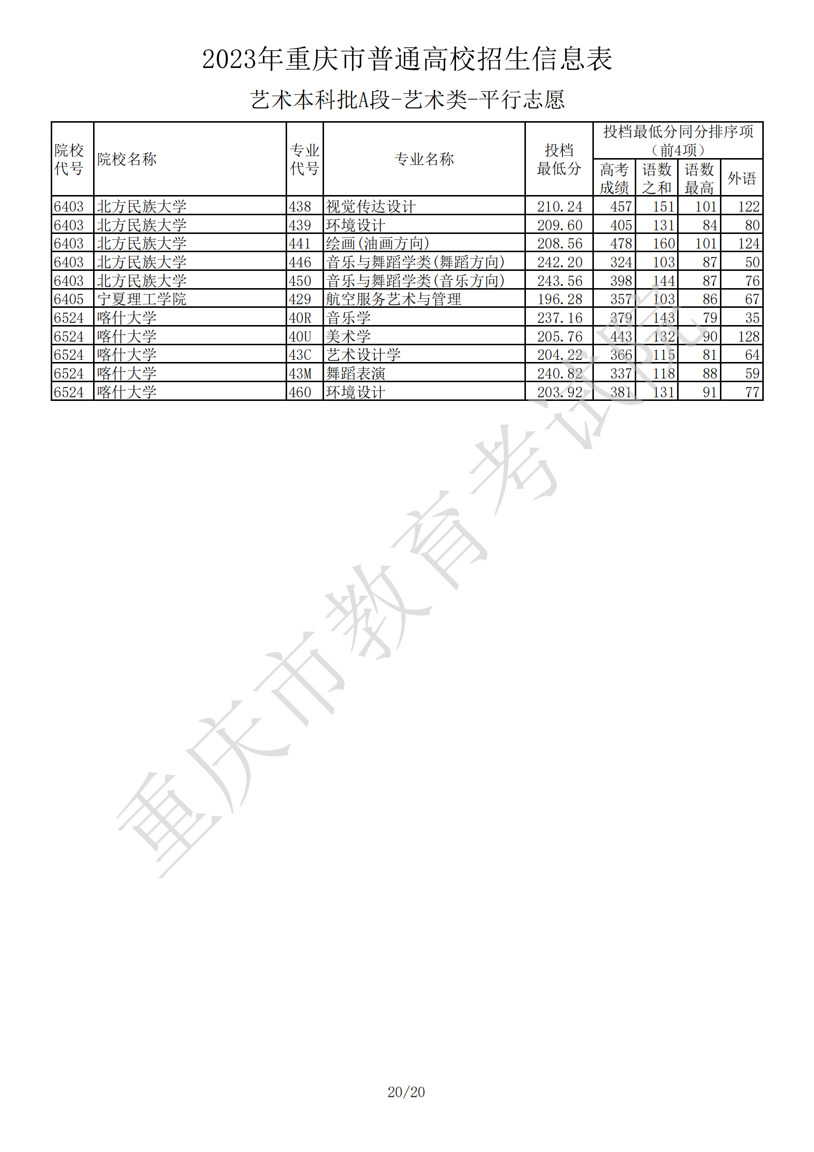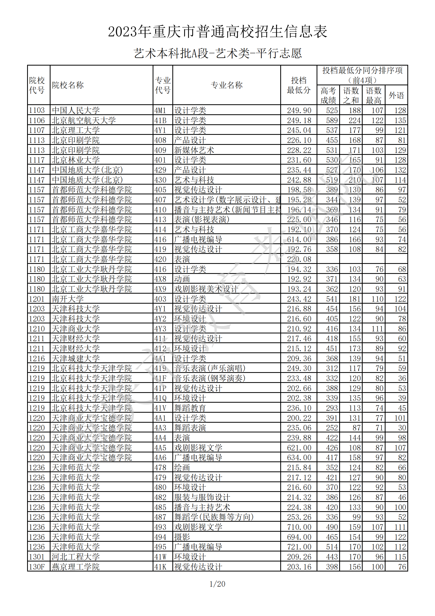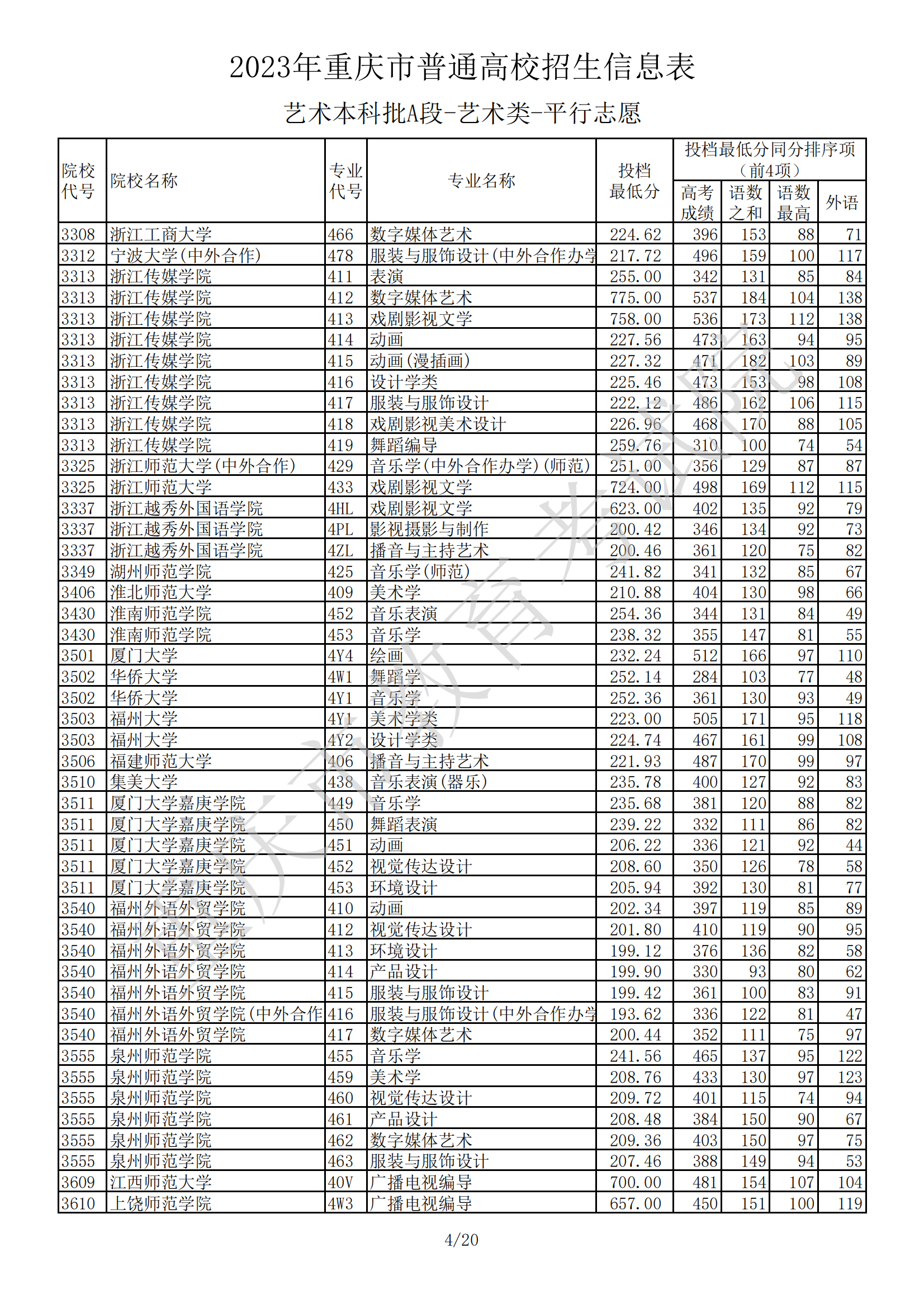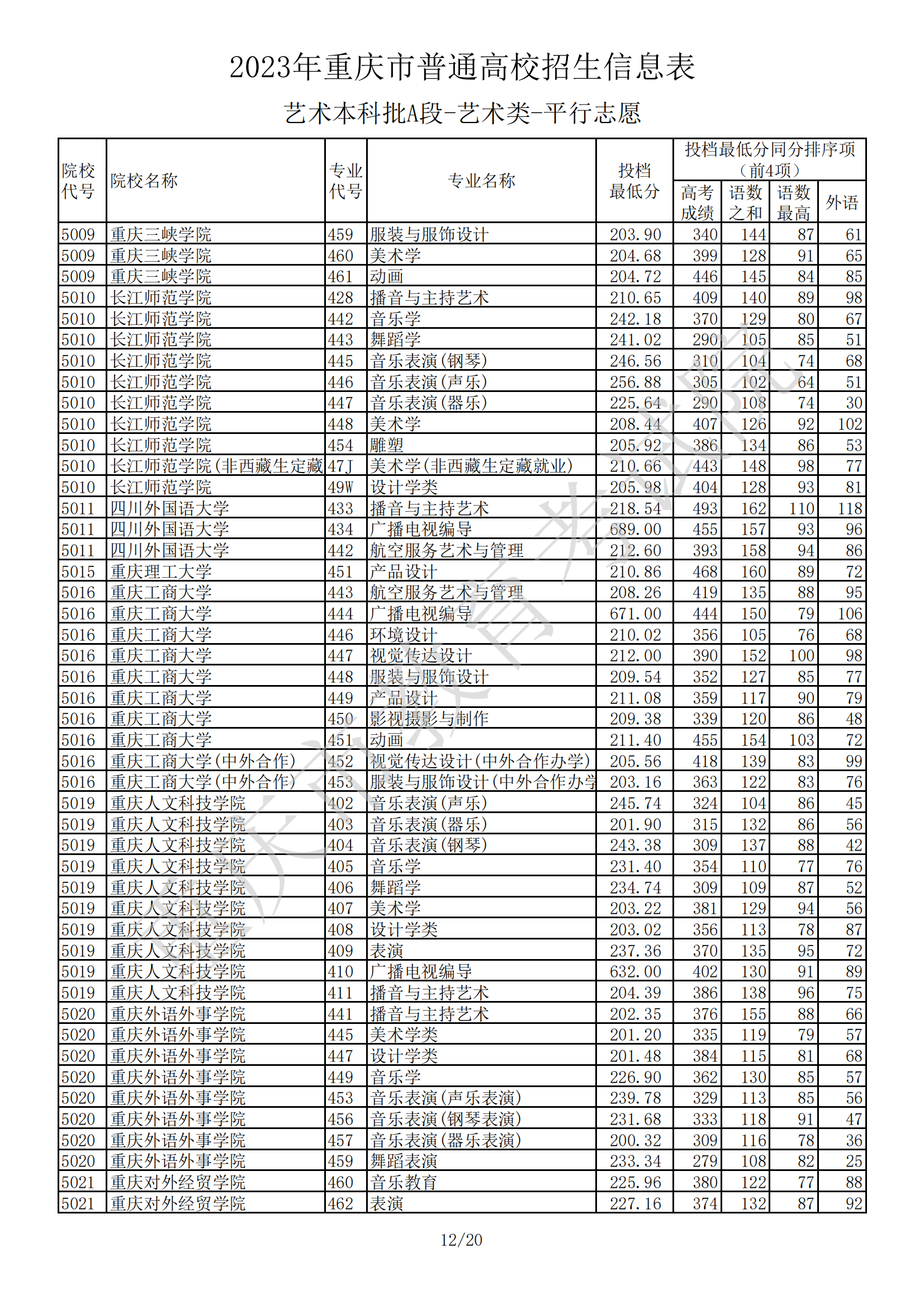 2023年重庆市普通高校招生信息表(艺术本科批A段-艺术类-平行志愿)07-15