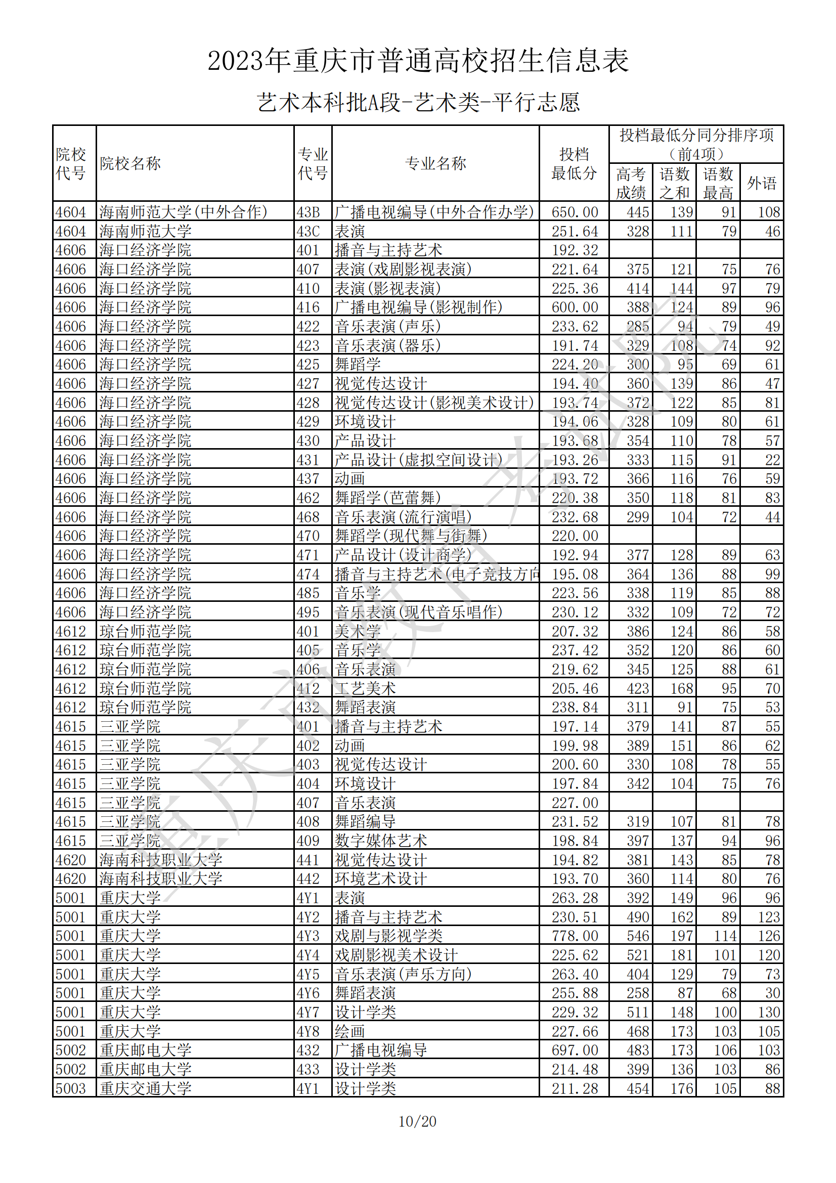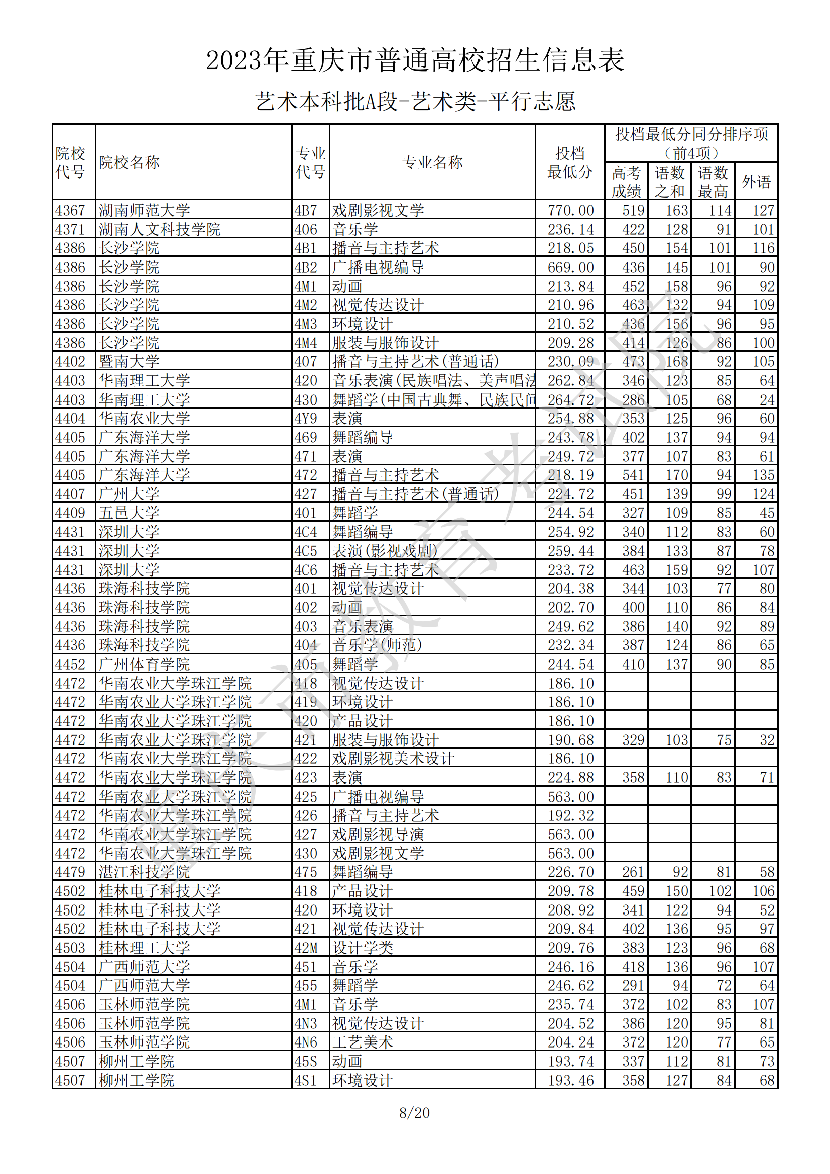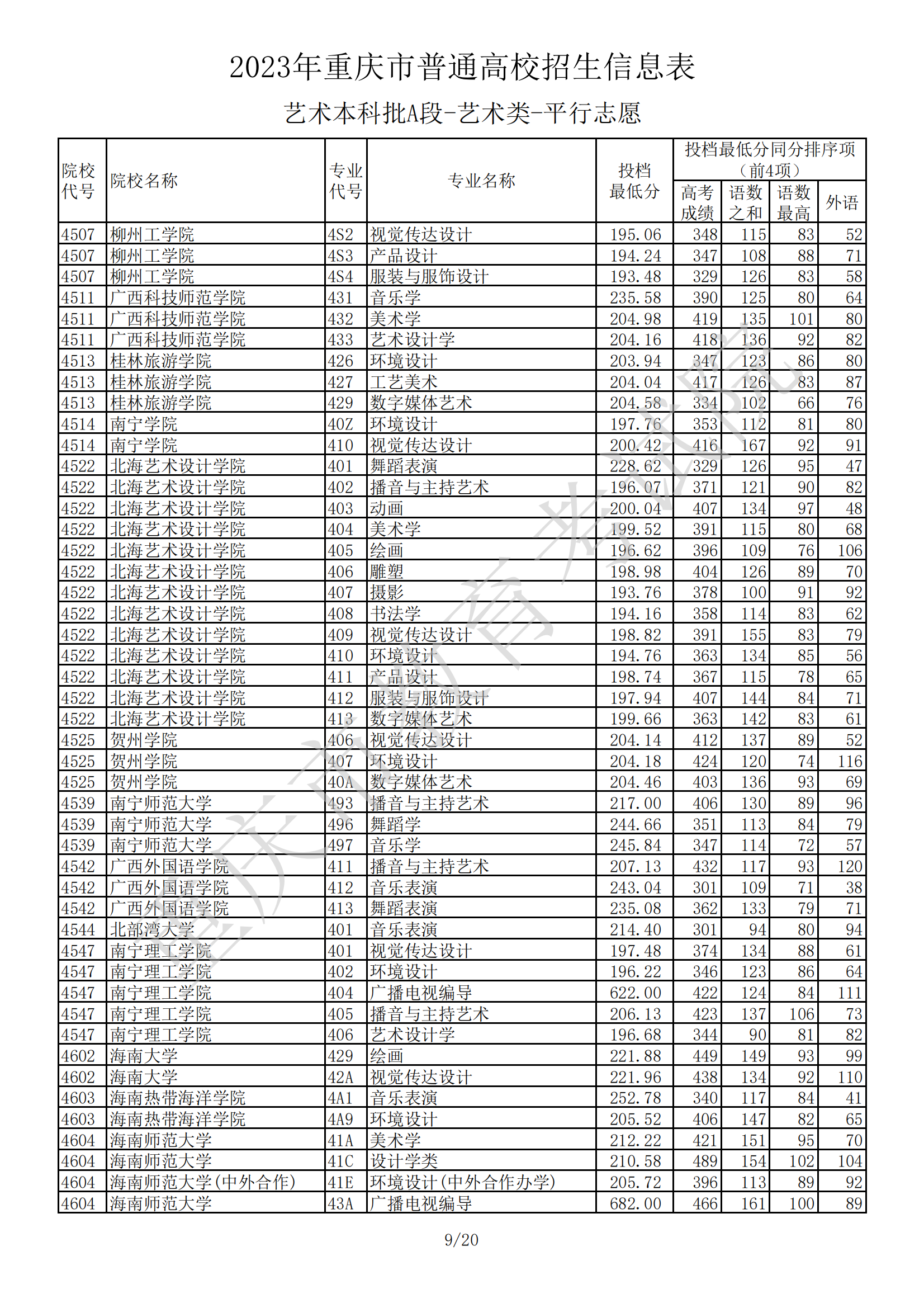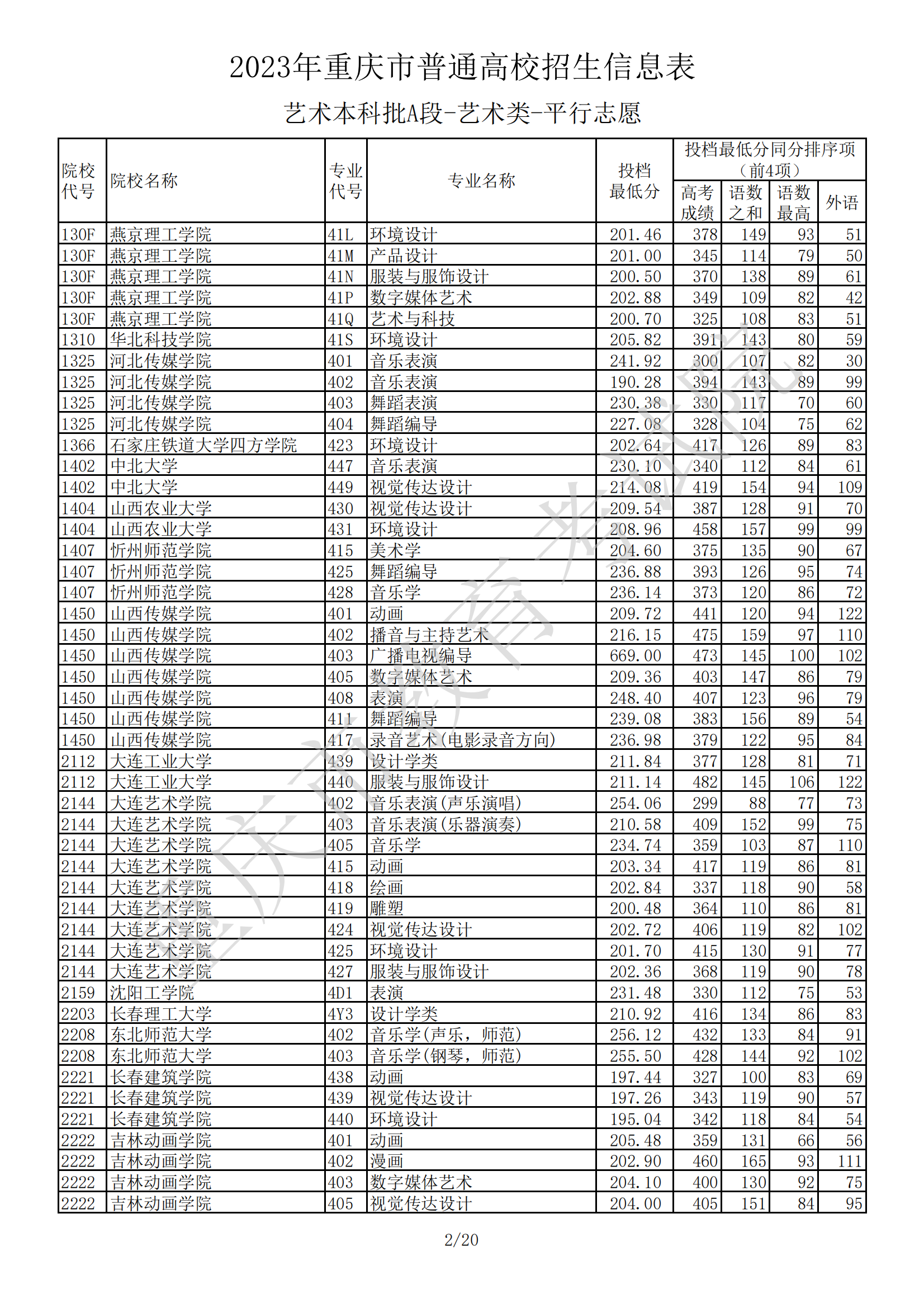 2023年重庆市普通高校招生信息表(艺术本科批A段-艺术类-平行志愿)07-15