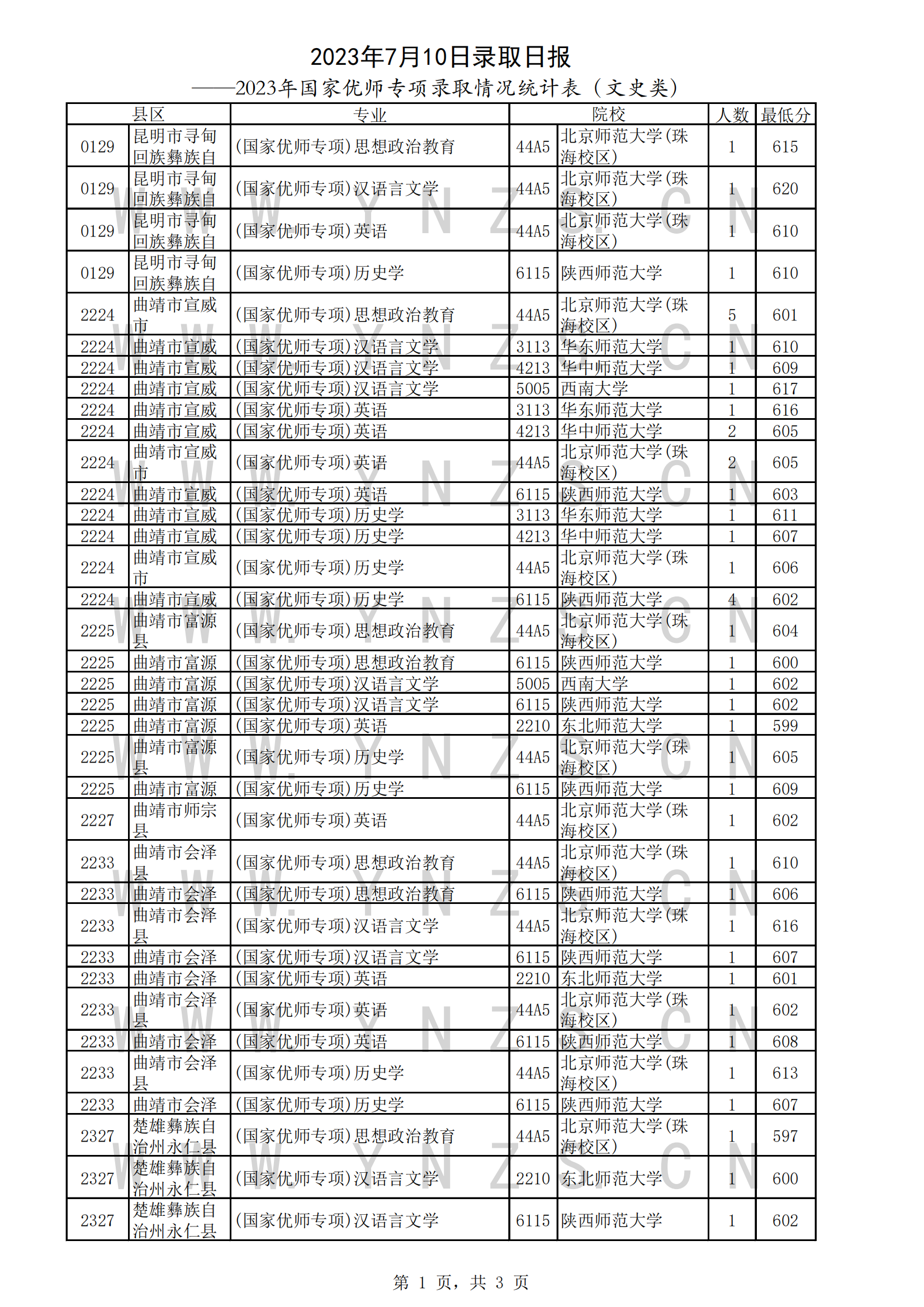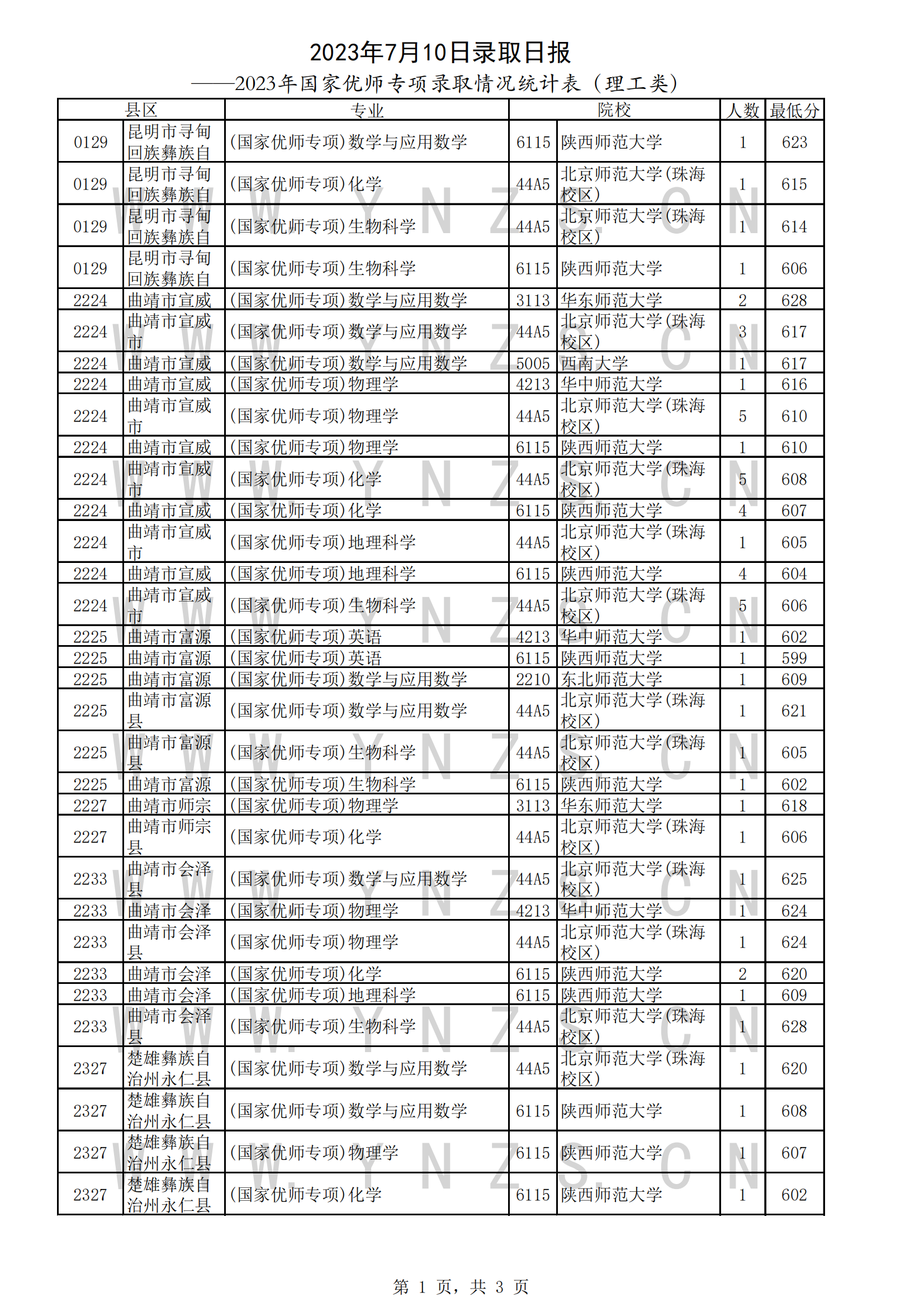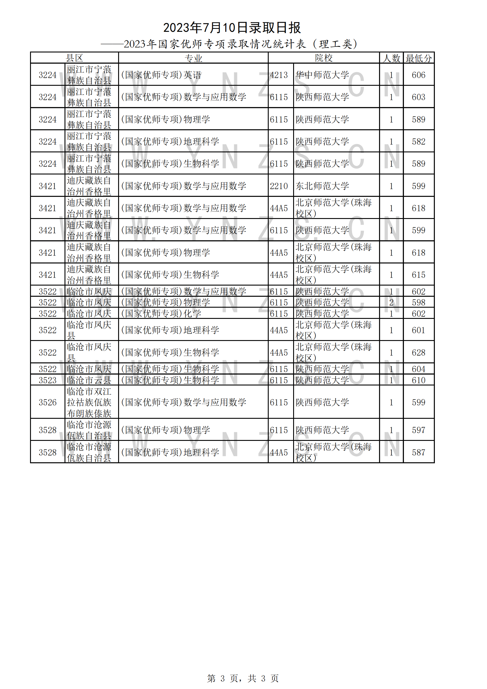 2023年7月10日录取日报-国家优师专项录取情况统计表
