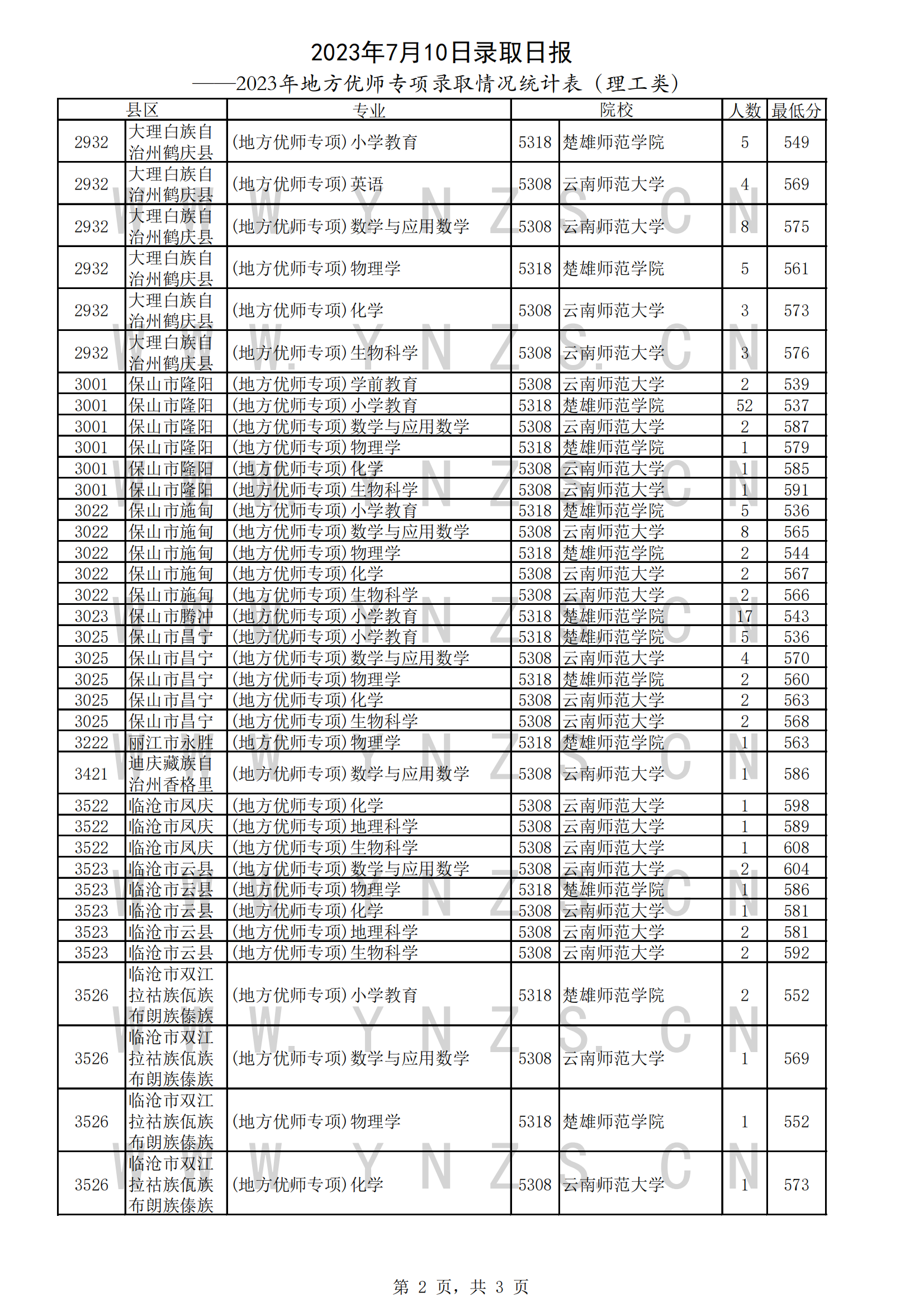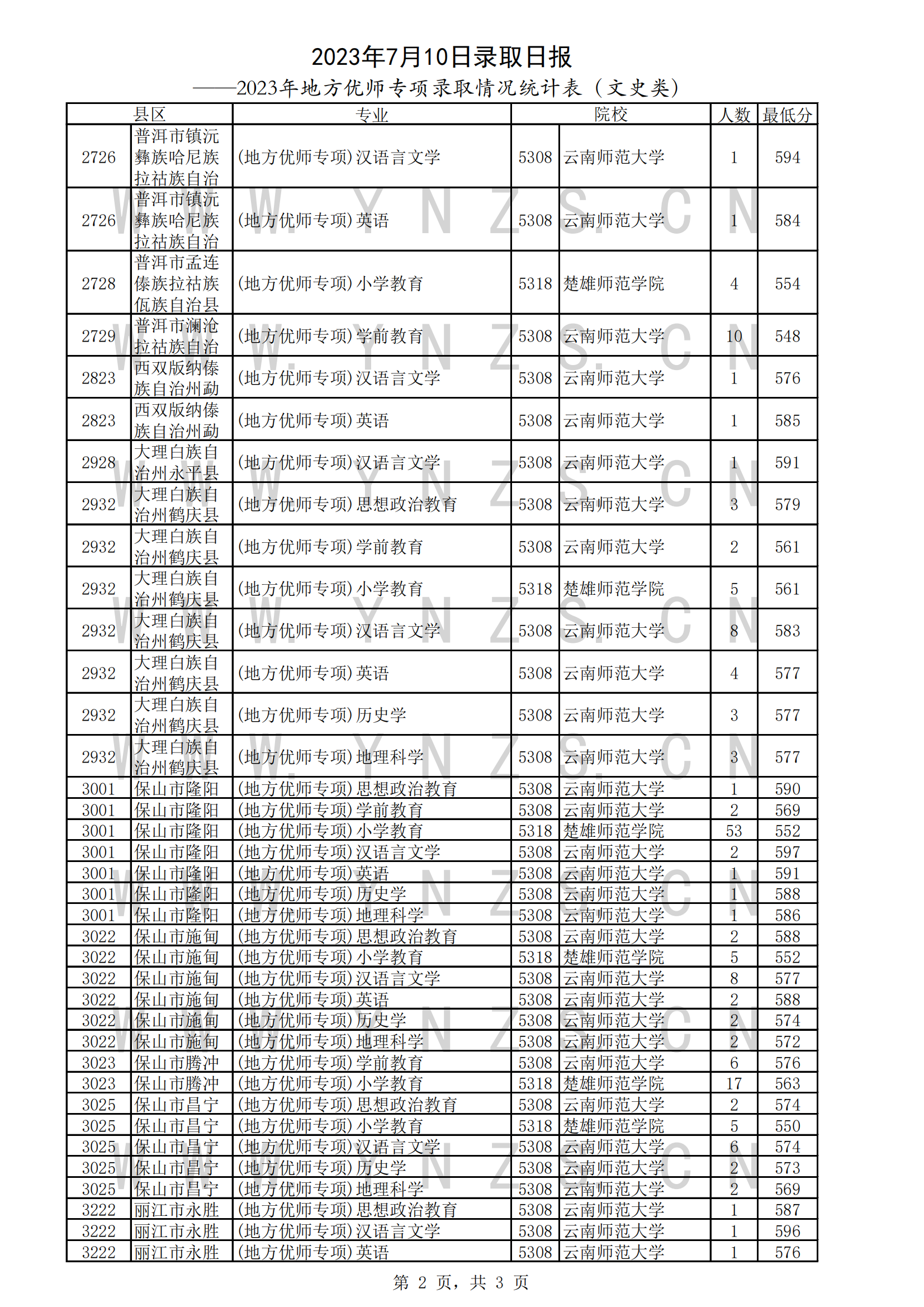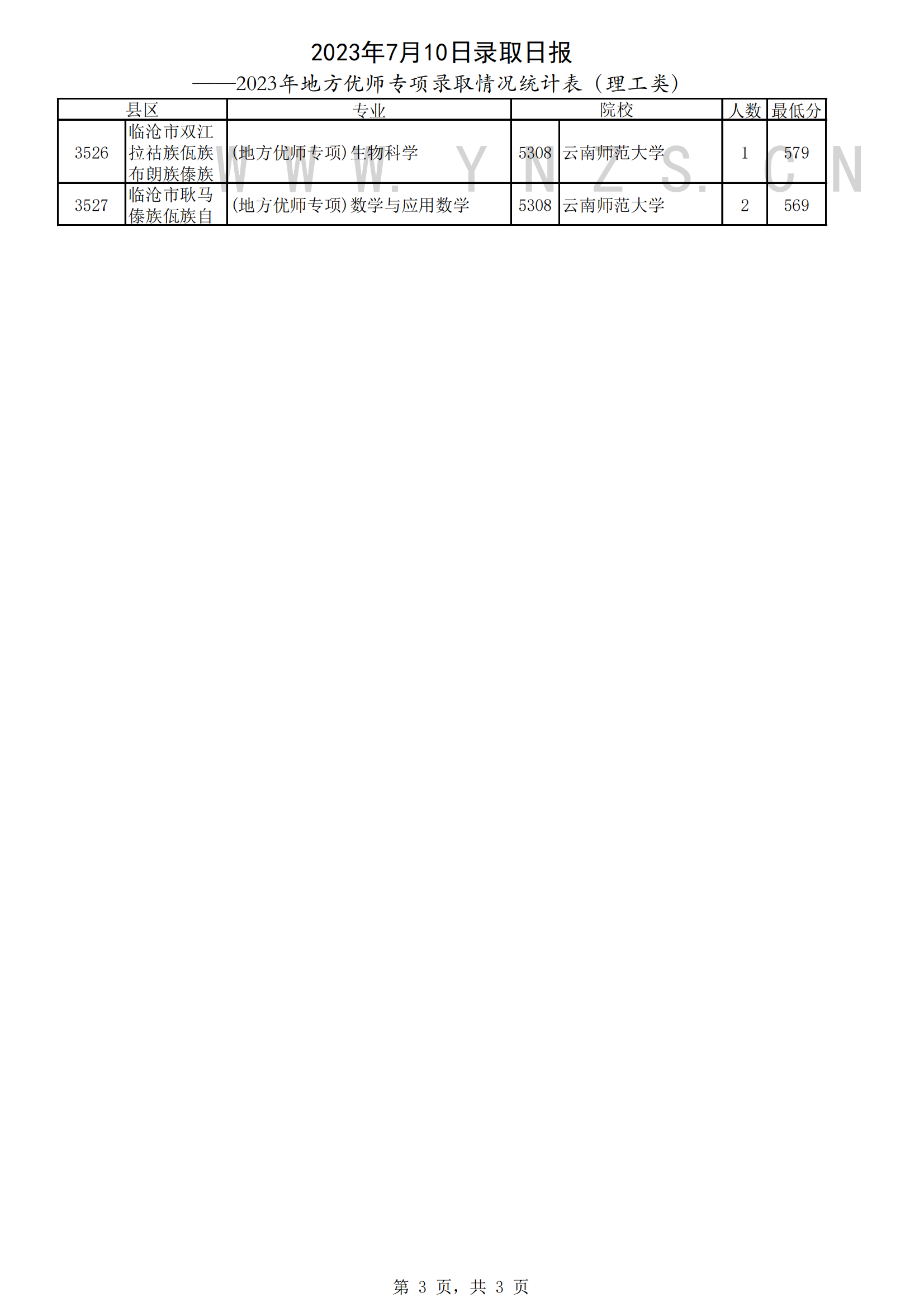 2023年7月10日录取日报-地方优师专项录取情况统计表