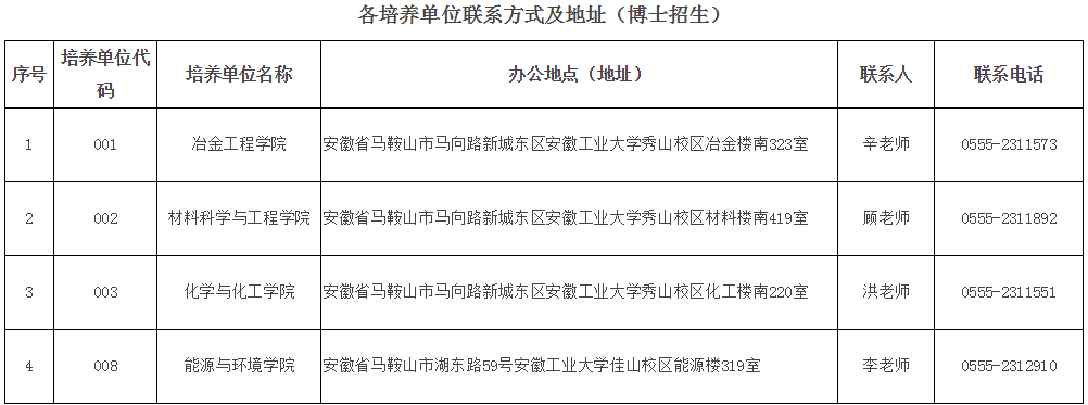 安徽工业大学研究生招生办公室:佳山校区教三218室