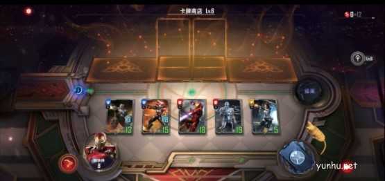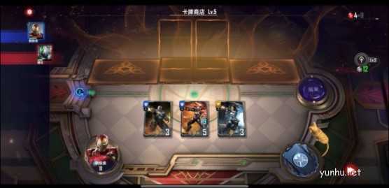 第三回合买绝境战甲和究极钢铁侠。绝境战甲先下,放到中间位置,效果是放置时获得攻击力加成并且第一下会造成暴击,究极钢铁侠放到绝境战甲右侧,效果是给所有友方提供攻击力加成。
