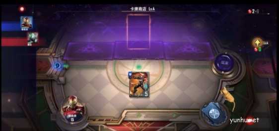 第二回合先买钢铁侠1型放在最左侧,然后买假面夫人放到最右侧。这两张卡牌的效果也是商店升级时获得属性加成,可以和战争机器效果配合。